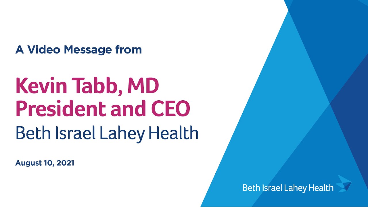 'We now find ourselves at the edge of another surge in COVID cases with the growing threat of the Delta variant,' said BILH President & CEO Kevin Tabb, MD, in a video message to all BILH staff. 'We can either prolong this pandemic by giving in and giving up to our exhaustion and our frustration, or we can commit to doing everything we can to fight it. We can't give in, and we can't give up. And our profound responsibility to our patients and to each other — our moral responsibility, really — must drive the actions we take as an organization.'